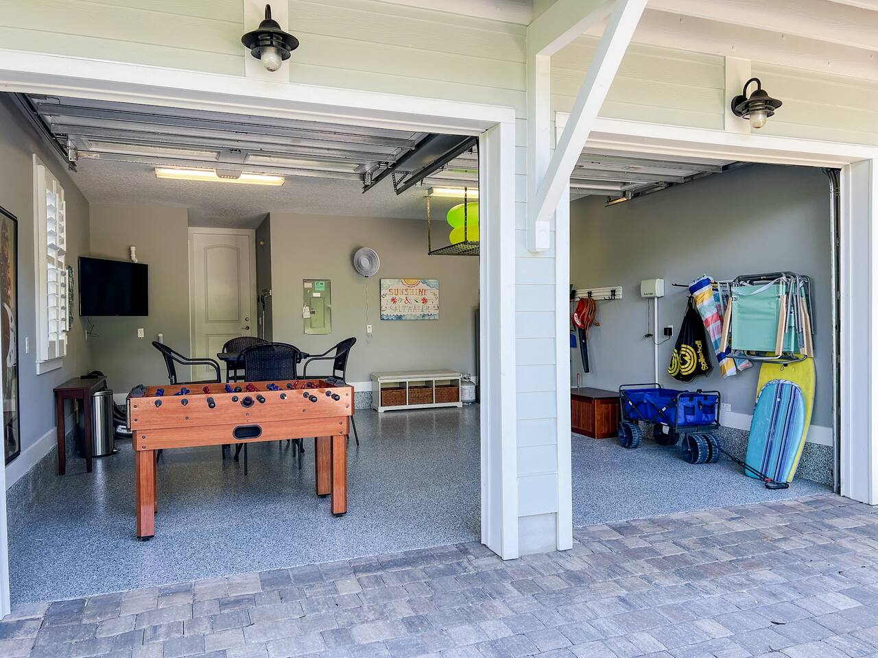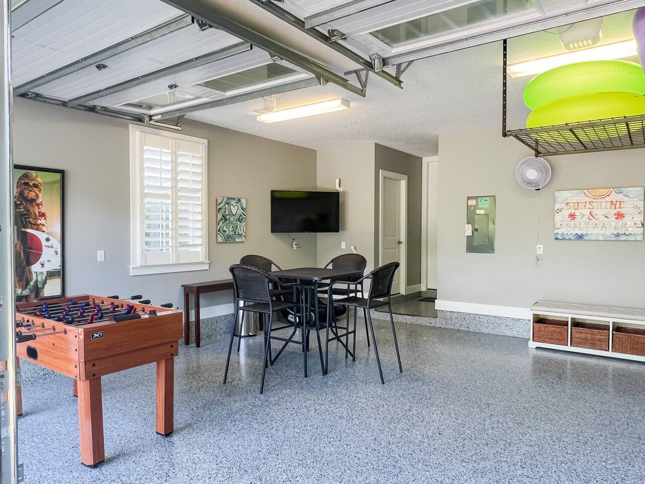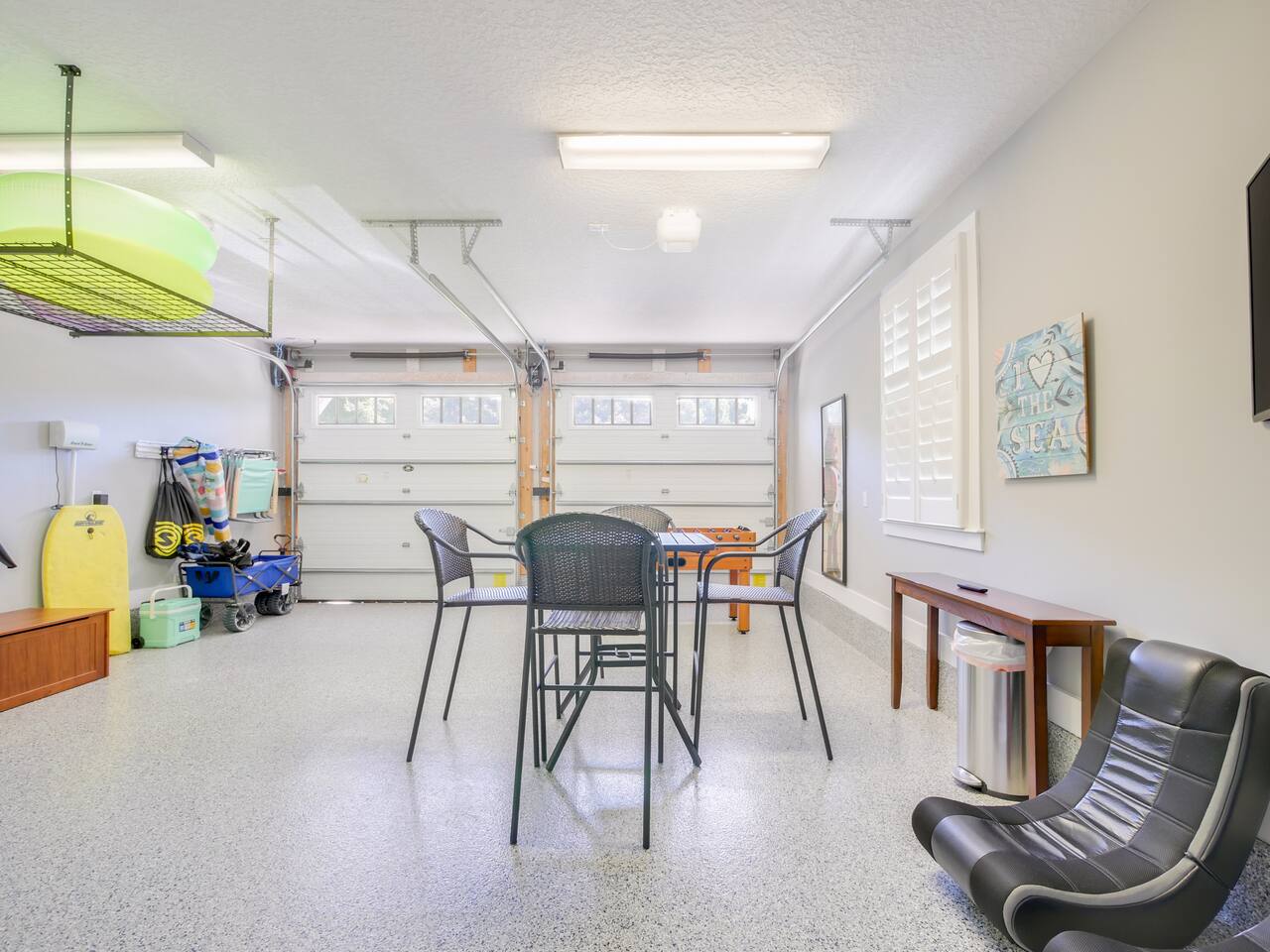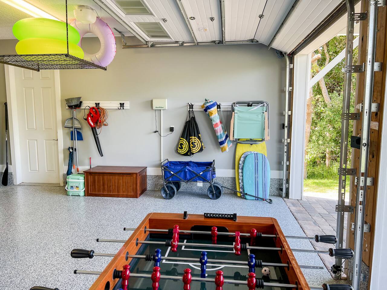 ★ MUST BE 25 YEARS OLD TO BOOK ★ ★ WE DO NOT ALLOW PETS ★ BACKYARD: The backyard was designed with relaxation and comfort in mind. ✔ 10 person hot tub located in completely private, fenced in backyard ✔ Large Covered Deck w/Outside Dining Table ✔ Tiki Bar for Entertaining ✔ Outdoor Shower LIVING & DINING ROOM: ✔ Comfortable Leather Sofas & Reading Chair ✔ Large 55in SMART TV w/Cable ✔ Large Dining Table/Open Concept KITCHEN The kitchen is fully stocked with everything you need to make the perfect meal from appliances, cookware to tableware. ✔ Stove/Oven ✔ Microwave ✔ Toaster ✔ Blender ✔ Hot Water Kettle ✔ Coffee Maker & Keurig ✔ Double Door Refrigerator/Freezer - Filtered Water ✔ Dishwasher ✔ Glasses, Plates, Bowls, Silverware, Pots, Pans, Serving Trays & Utensils SLEEPING ARRANGEMENTS - ✔ Bedroom 1 - King Sized Bed w/ Ensuite Bathroom ✔ Bedroom 2 - Queen Sized Bed ✔ Bedroom 3 - 2 Twin/Full Bunk Beds ✔ Private Sleeping Loft on 3rd Floor - Full Bed & Queen Sofa Bed ** All bedrooms come with similar set of amenities ** - Premium Pillows, Linens and Sheets - Closets w/ Hangers - Dressers w/Spacious Drawers GAME GARAGE ✔ SMART TV w/High Top Table & Chairs ✔ Gaming Chairs if you BYO your own video game console ✔ Foosball Table