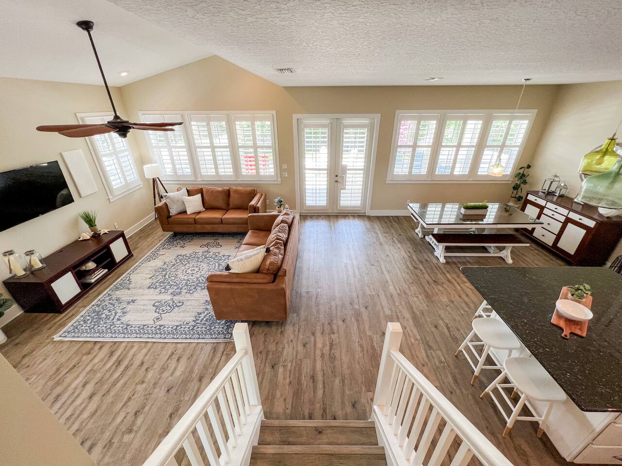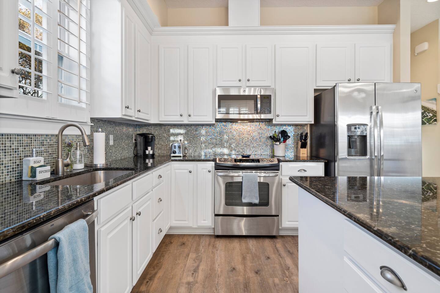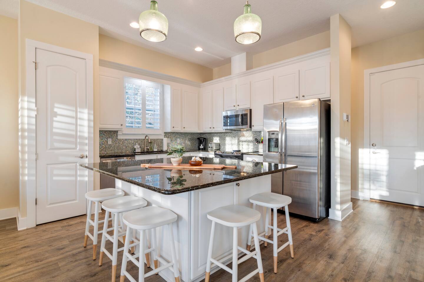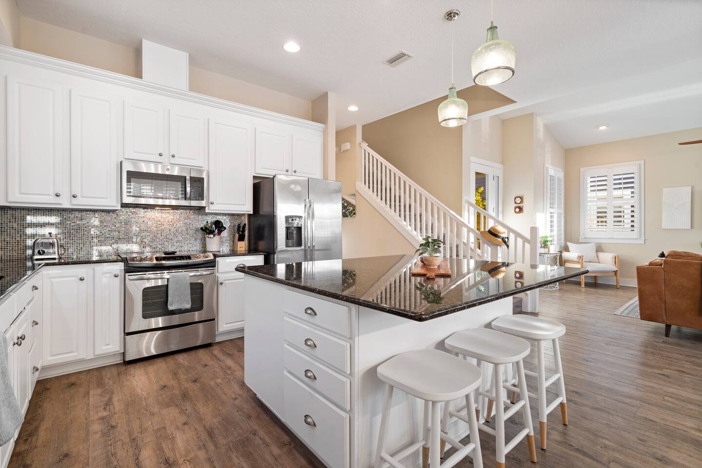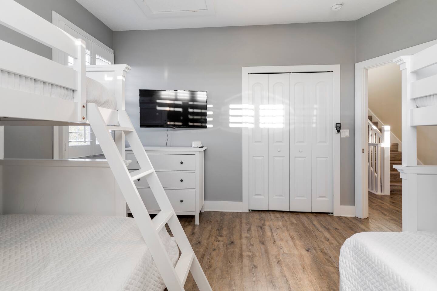 ★ MUST BE 25 YEARS OLD TO BOOK ★ ★ WE DO NOT ALLOW PETS ★ BACKYARD: The backyard was designed with relaxation and comfort in mind. ✔ 10 person hot tub located in completely private, fenced in backyard ✔ Large Covered Deck w/Outside Dining Table ✔ Tiki Bar for Entertaining ✔ Outdoor Shower LIVING & DINING ROOM: ✔ Comfortable Leather Sofas & Reading Chair ✔ Large 55in SMART TV w/Cable ✔ Large Dining Table/Open Concept KITCHEN The kitchen is fully stocked with everything you need to make the perfect meal from appliances, cookware to tableware. ✔ Stove/Oven ✔ Microwave ✔ Toaster ✔ Blender ✔ Hot Water Kettle ✔ Coffee Maker & Keurig ✔ Double Door Refrigerator/Freezer - Filtered Water ✔ Dishwasher ✔ Glasses, Plates, Bowls, Silverware, Pots, Pans, Serving Trays & Utensils SLEEPING ARRANGEMENTS - ✔ Bedroom 1 - King Sized Bed w/ Ensuite Bathroom ✔ Bedroom 2 - Queen Sized Bed ✔ Bedroom 3 - 2 Twin/Full Bunk Beds ✔ Private Sleeping Loft on 3rd Floor - Full Bed & Queen Sofa Bed ** All bedrooms come with similar set of amenities ** - Premium Pillows, Linens and Sheets - Closets w/ Hangers - Dressers w/Spacious Drawers GAME GARAGE ✔ SMART TV w/High Top Table & Chairs ✔ Gaming Chairs if you BYO your own video game console ✔ Foosball Table