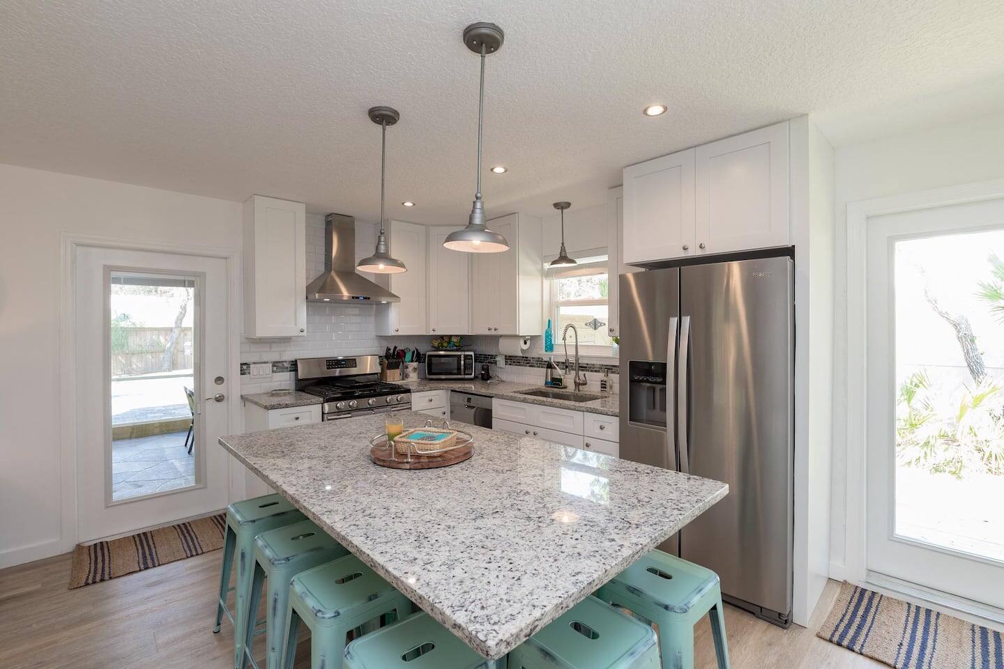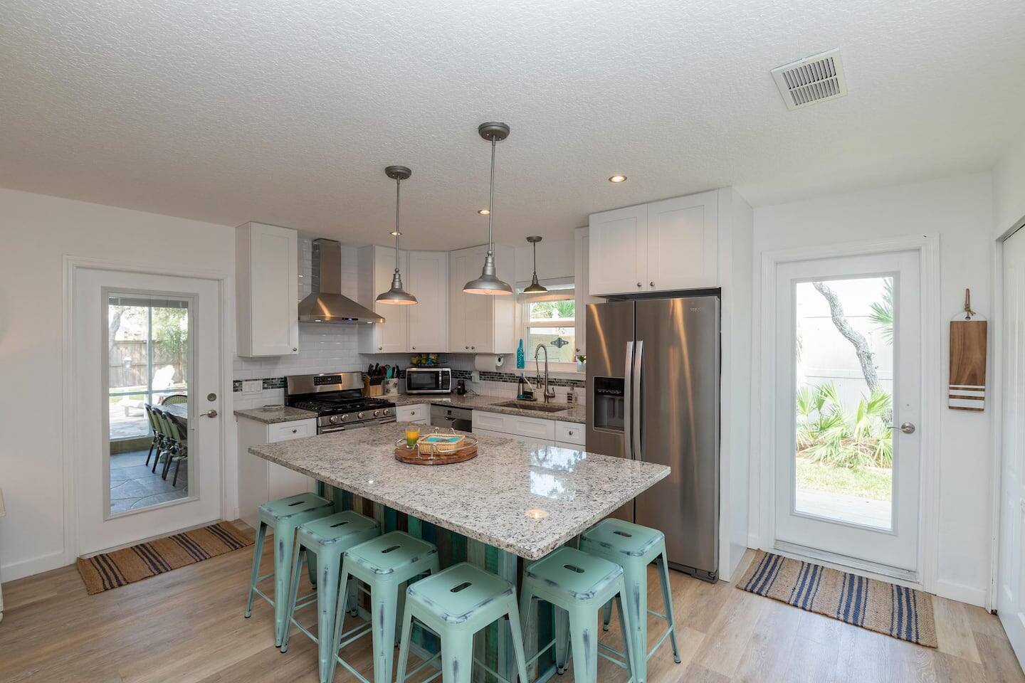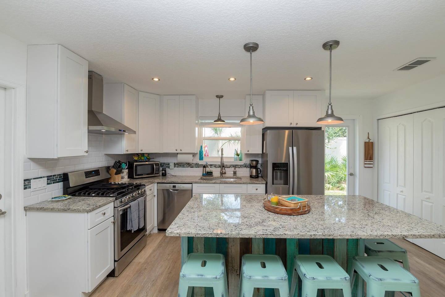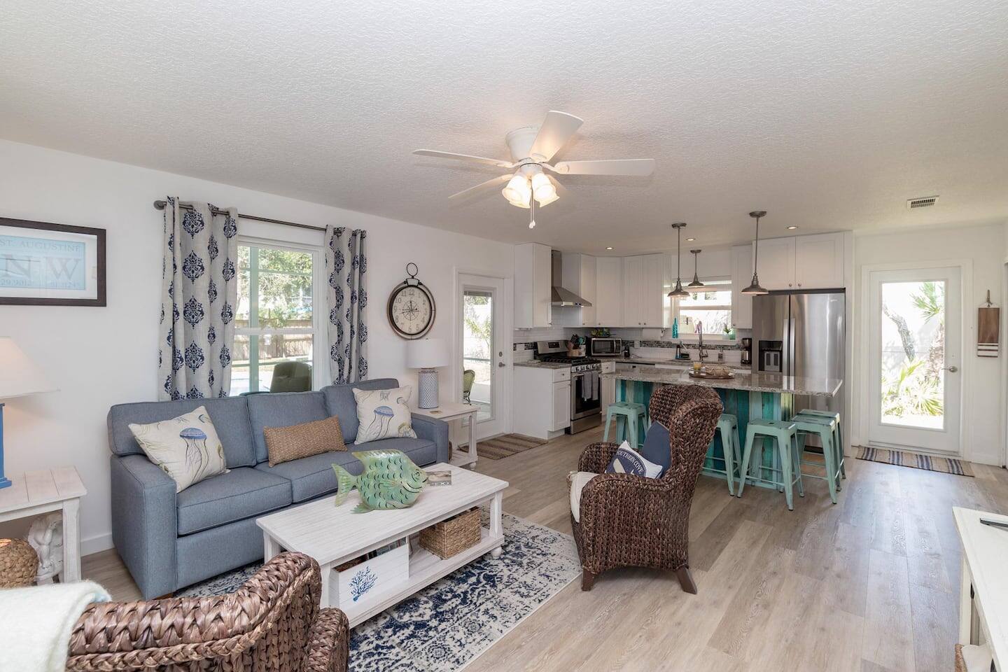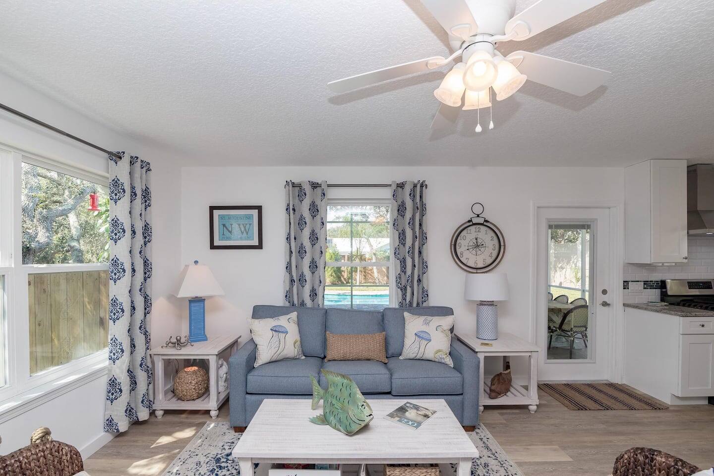 ★ ISLAND BREEZE ★- Newly Renovated 2 Bedroom, 2 Bath Home w/Screened Lanai and New Solar Heated Pool ✔ 2 Comfy Bedrooms and 2 Full Baths ✔ Screened Lanai with Outdoor SMART TV ✔ Solar Heated Pool ✔ Firepit ✔ Super Close to New Beach Access Point (.25 miles) ✔ Short drive to Downtown St. Augustine (15 Min) ✔ Yard Games, Large Outdoor Dining Table and Grill ✔ Equipped with 4 TVs and high speed Internet