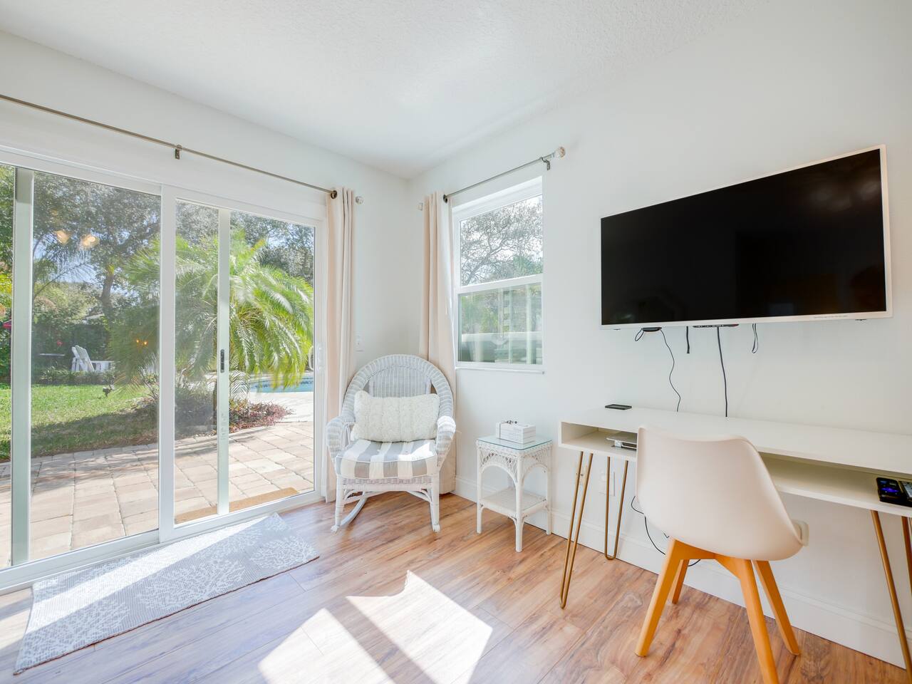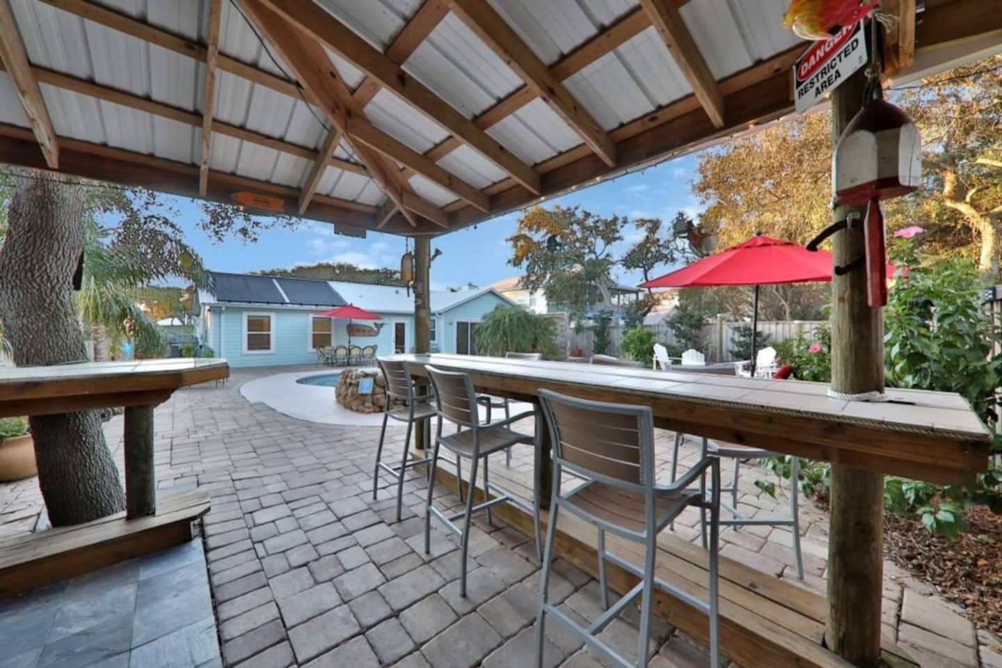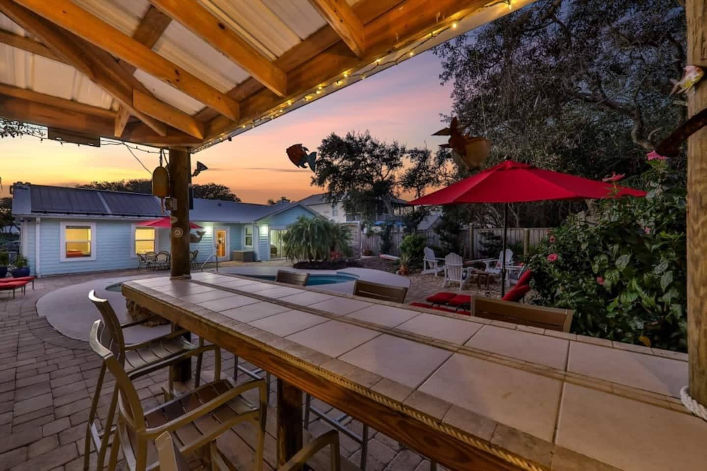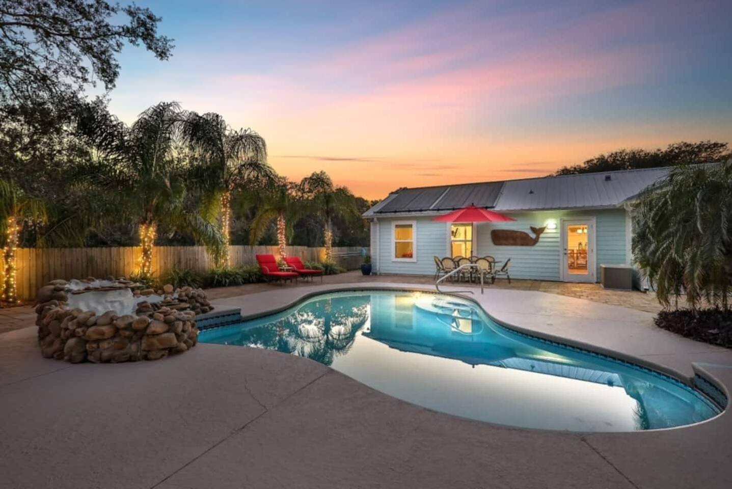 ISLAND RETREAT - Truly a One of a Kind Private Outdoor Living Experience! ✔ 3 Comfy Bedrooms (Extra 4th Private Sleeping Room) and 2 Full Baths ✔ Solar Heated Pool and Brand New Hot Tub ✔ Tiki Bar, Yard Games and Grill ✔ Firepit ✔ Super Close to New Beach Access Point (.25 miles) ✔ Short drive to Downtown St. Augustine (15 Min) ✔ Kids Game and Entertainment Room ✔ Equipped with 5 TVs and high speed Internet