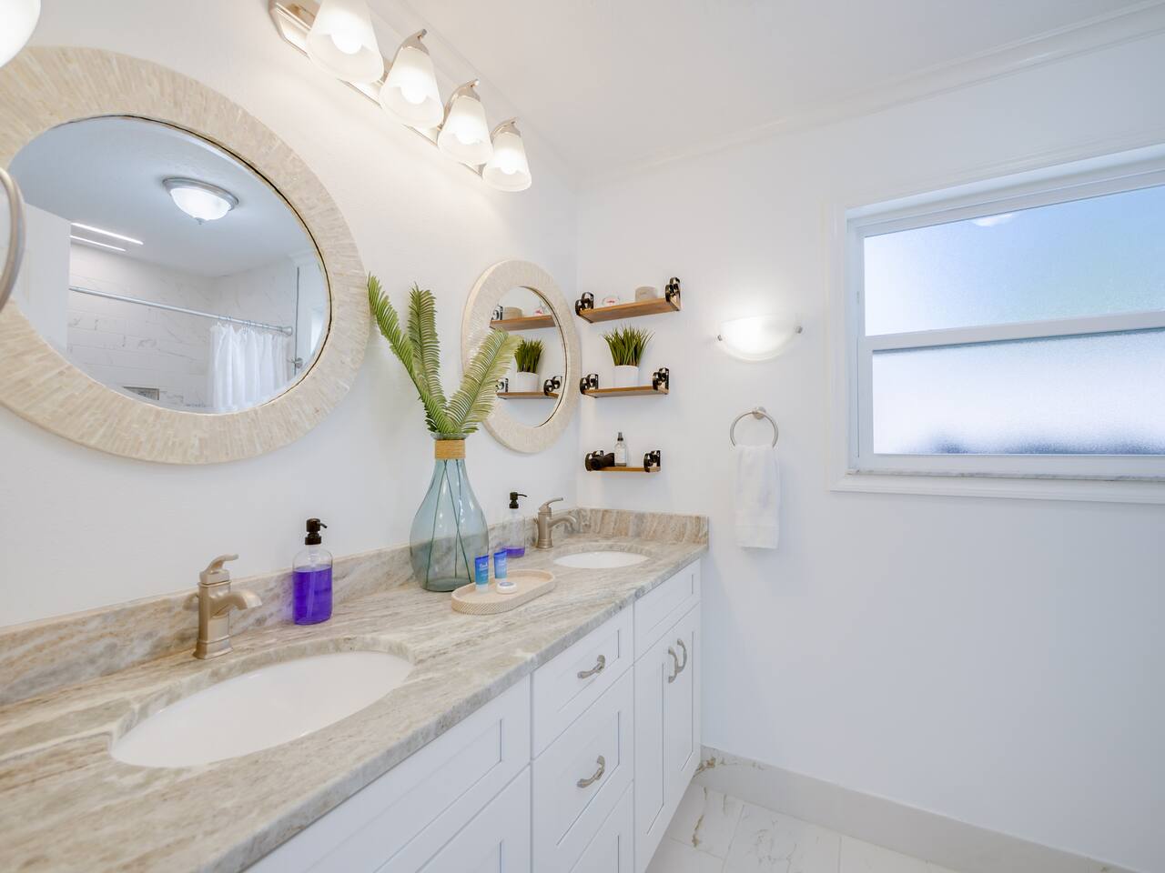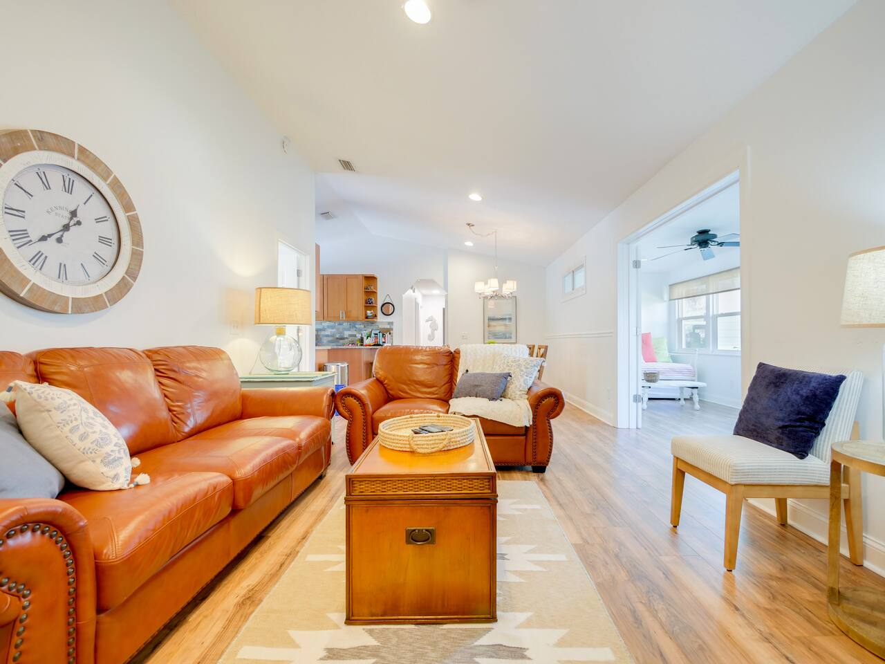 ★ MUST BE 25 YEARS OLD TO BOOK ★ ★ WE DO NOT ALLOW PETS ★ BACKYARD: The backyard Oasis was designed with complete privacy, relaxation and comfort in mind. The Tiki Hut, solar heated pool, hot tub and firepit create the perfect outdoor haven. We are close to the intercoastal and the beach, both offer boating, kayaking, and fishing. ✔ Pool and hot tub located in completely private large fenced in backyard ✔ Large Poolside Patio w/Outside Dining Table ✔ Tiki Hut w/ 55in Flat Screen TV, Grill & Sink ✔ Tropical Landscaping ✔ Outdoor Shower w/Sunset Views over the Intercoastal LIVING & DINING ROOM: ✔ Comfortable Leather Sofas & Reading Chairs ✔ Large 55in SMART TV w/Cable ✔ Gas Fireplace for Use in Colder Months ✔ Large Dining Table/Open Concept KITCHEN The kitchen is fully stocked with everything you need to make the perfect meal from appliances, cookware to tableware. ✔ Stove/Oven ✔ Microwave ✔ Toaster ✔ Blender ✔ Hot Water Kettle ✔ Coffee Maker ✔ Double Door Refrigerator/Freezer - Filtered Water ✔ Dishwasher ✔ Glasses, Plates, Bowls, Silverware, Pots, Pans, Serving Trays & Utensils SLEEPING ARRANGEMENTS - 3 Bedrooms + 4th Private Sleeping Room ✔ Bedroom 1 - King Sized Bed w/ Ensuite Bathroom ✔ Bedroom 2 - Queen Sized Bed ✔ Bedroom 3 - 2 Twin Beds ✔ Private Sleeping Space - 2 Twin Beds ✔ Queen Sized Sleeping Sofa in Living Room ** All bedrooms come with similar set of amenities ** - Premium Pillows, Linens and Sheets - Closets w/ Hangers - Dressers w/Spacious Drawers - Night Stands w/Reading Lamps GAME ROOM ✔ Can Close French Doors for Privacy (Also acts as the 4th sleeping space) ✔ Tons of Games & Puzzles ✔ Game Table w/4 Chairs